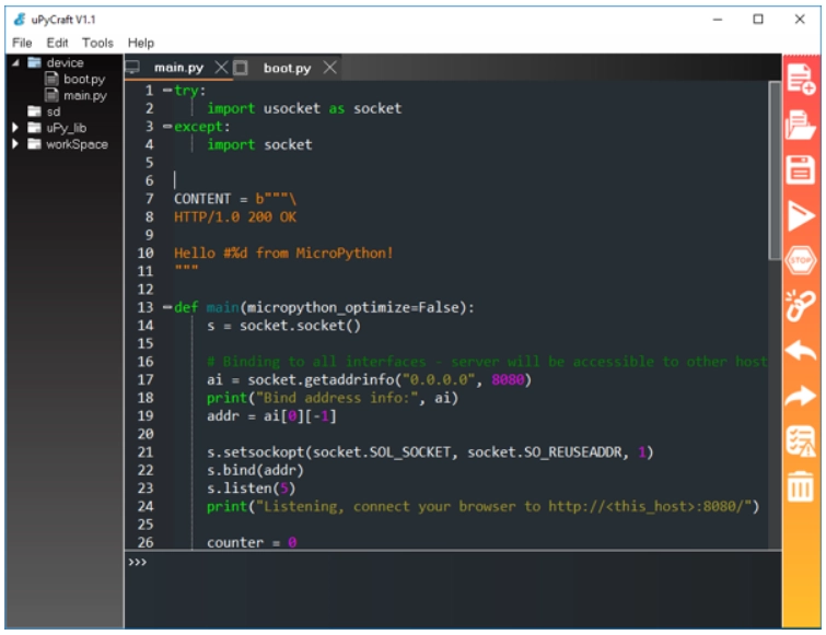 • Interaktif: MicroPython menyediakan REPL (Read-Eval-Print Loop) yang memungkinkan pengembang untuk menulis dan mengeksekusi kode secara interaktif, yang sangat berguna untuk pengembangan dan debugging cepat.